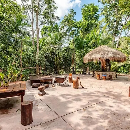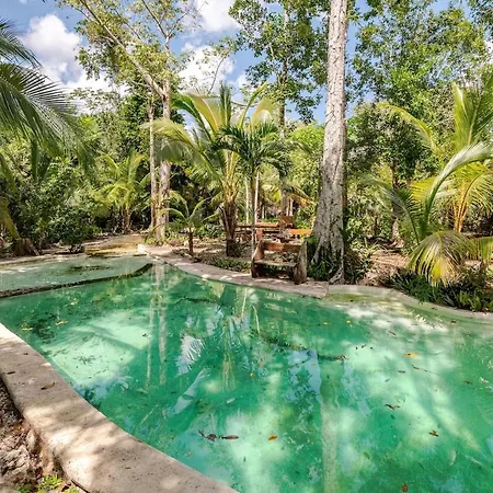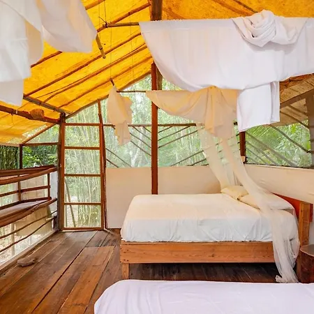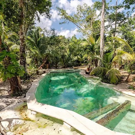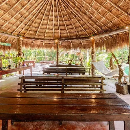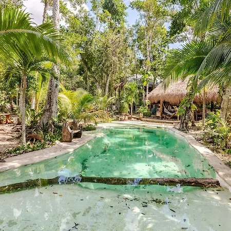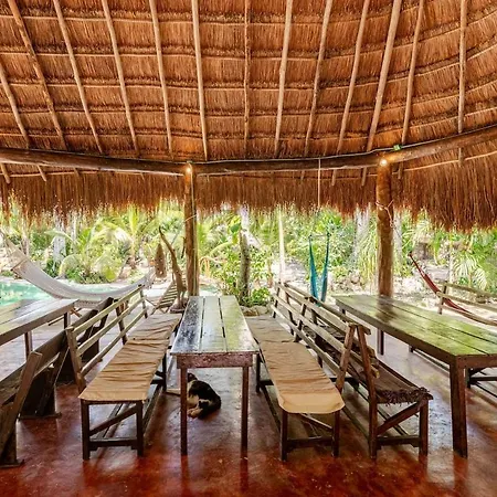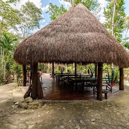 Offering guests to unwind in a Turkish steam room, a steam room, and a sauna, Cabaña Zapote en Rancho Los Jaguares Jungle Retreat Tulum Hotel is located approximately a 10-minute ride from Plastic Flamingo. Providing an outdoor swimming pool, the 1-bedroom campsite also offers snorkelling, archery, and horse riding for active guests.